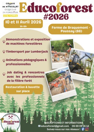 Journée sur la thématique de la forêt organisée par le Campus de Mirecourt. L'école de ROVILLE vous y proposera une animation casque VR avec des vidéos sur l’élagage et un quizz sur la microforêt animés par 9 étudiants en BTSA MV et nos formateurs.
